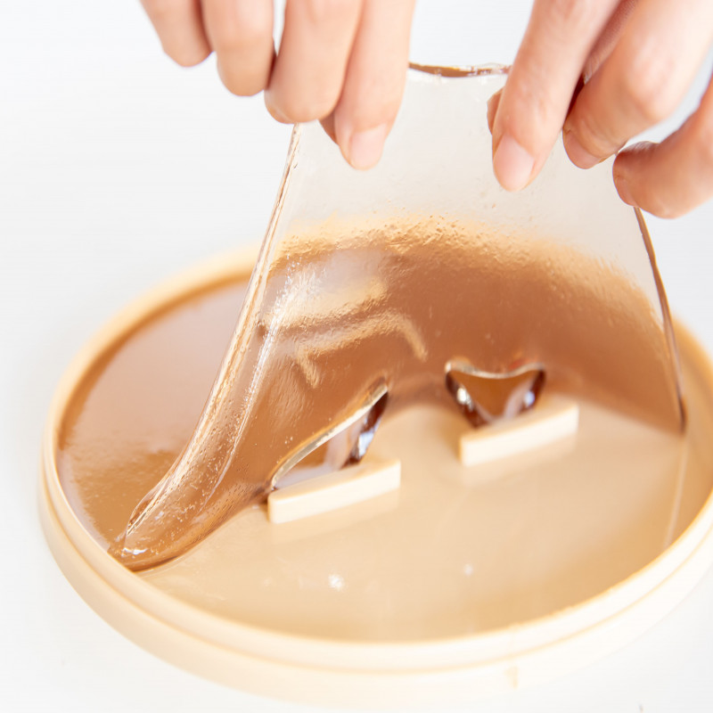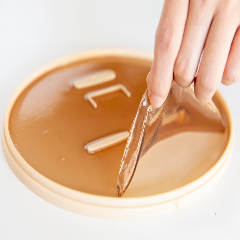 5- بعد دقيقتين تأكدي أنّ القناع وصل للقوام المتماسك ثم أزيلية من القالب وضعيه على بشرتك.