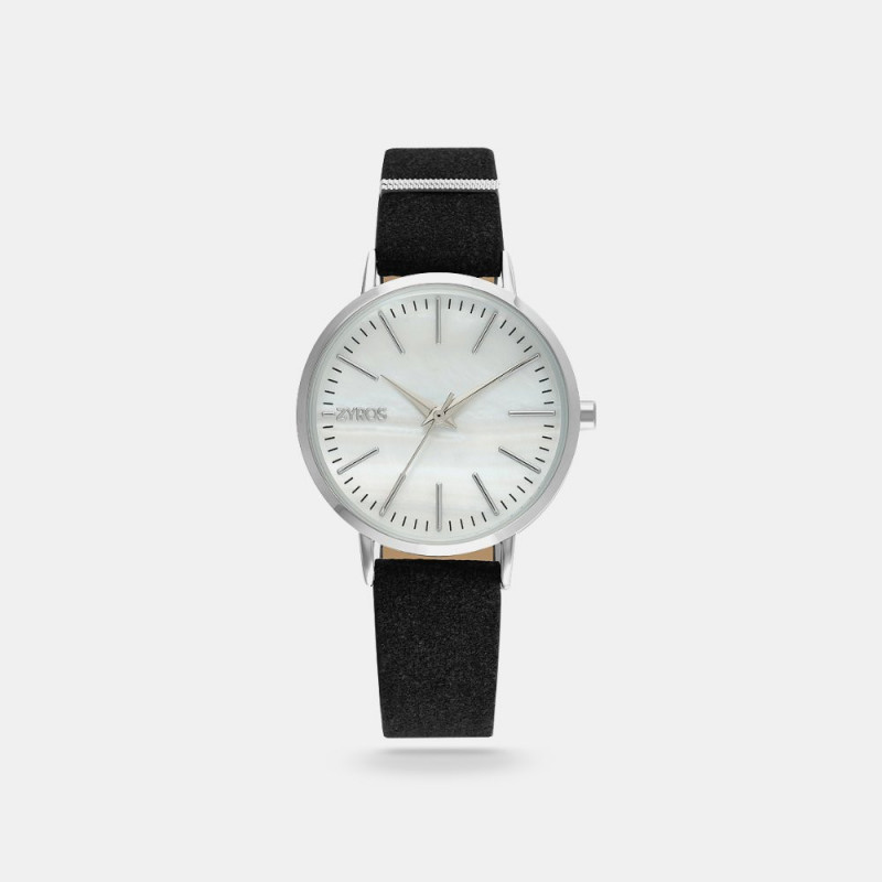 ساعه نسائية بسوار من الجلد باللون الأسود