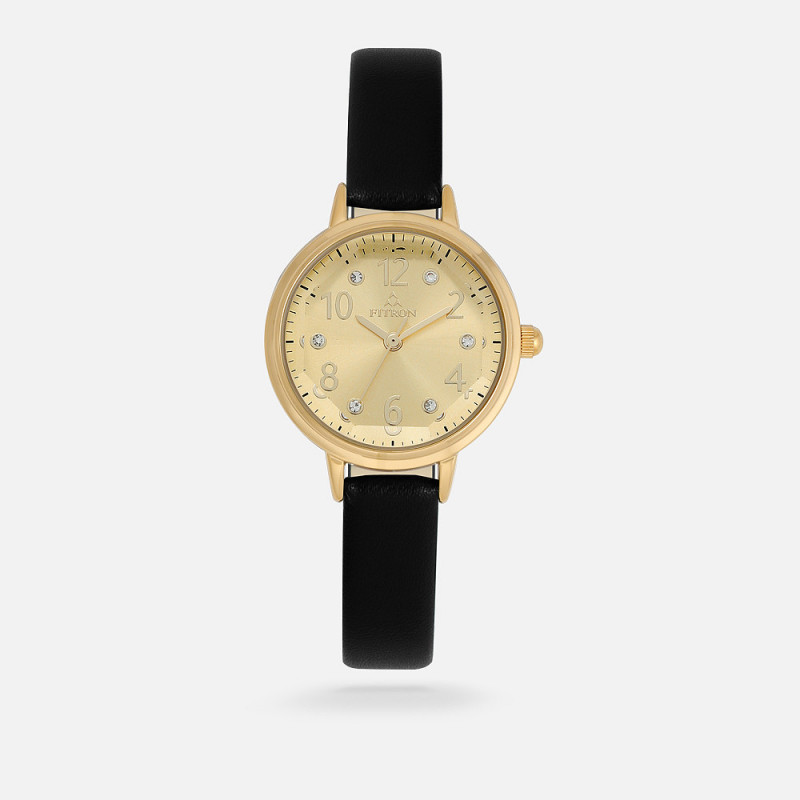 ساعة فيترون النسائية بسير من الجلد من اللون الاسود بتصميم عصري