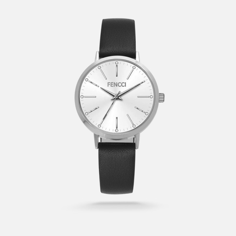 ساعه نسائية كلاسيك عصري من الجلد باللون الأسود بميناء واسع بحدود وإطار فضي