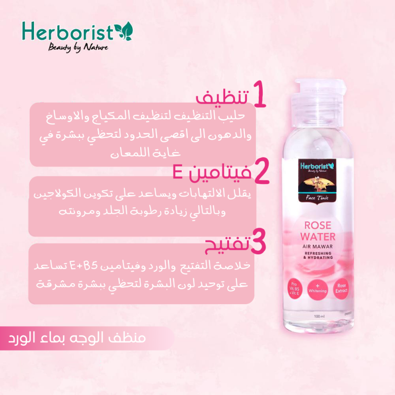 حتى وإنَّ كنتِ لا تُحبذين رائحة الورد، إلا أن نتيجته مثالية لبشرتكِ! فيمتلك القدرة الفائقة في ترطيب البشرة وتهدئتها لتتمتعي بها نضرة وصحية أكثر خالية من العيوب والمشاكل التي تؤثر على جمالها، وستجديها في مستحضرات تجميل عديدة.. لذا فإنَّ هيربوريست بخاخ ماء ورد للوجه سيكون بديلًا مثاليًا لكِ لبشرة موّردة ومشرقة جذابة.